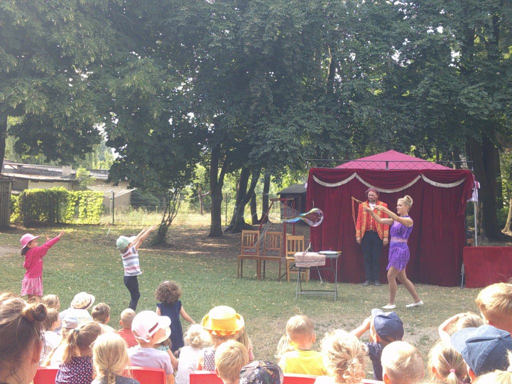 Unser Sommerfest startete am 01.07.22 um 9:00 Uhr im Garten. Dort wartete bereits der Zirkus Ramon Hein auf uns. Artistinnen und Clown Charlie boten uns eine lustige und überwältigende Show. Dabei hatten Groß und Klein eine Menge Spaß.