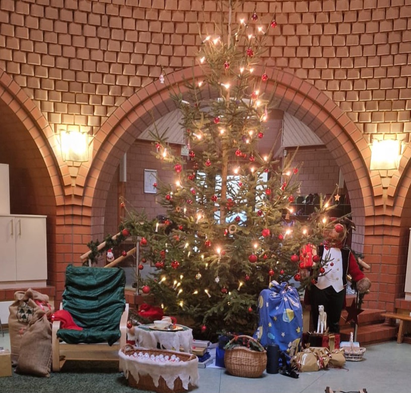Ein besonderes Highlight des Marktes war der Märchenraum, wo in kuschliger Atmosphäre alte Märchen vorgelesen wurden. An der Feuerschale gab Punsch und Bratwurst, was für zusätzliche Gemütlichkeit sorgte. zudem konnten Weihnachtsgestecke und Holzdekoration erworben werden. Die Kita war festlich mit vielen Lichtern dekoriert, was zur warmen und einladenden Atmosphäre beitrug. Der Weihnachtsmarkt war ein schöner Anlass, um die Gemeinschaft zu stärken und sich auf die bevorstehenden Feiertage einzustimmen.