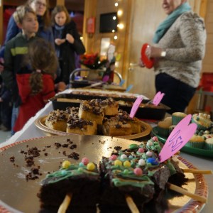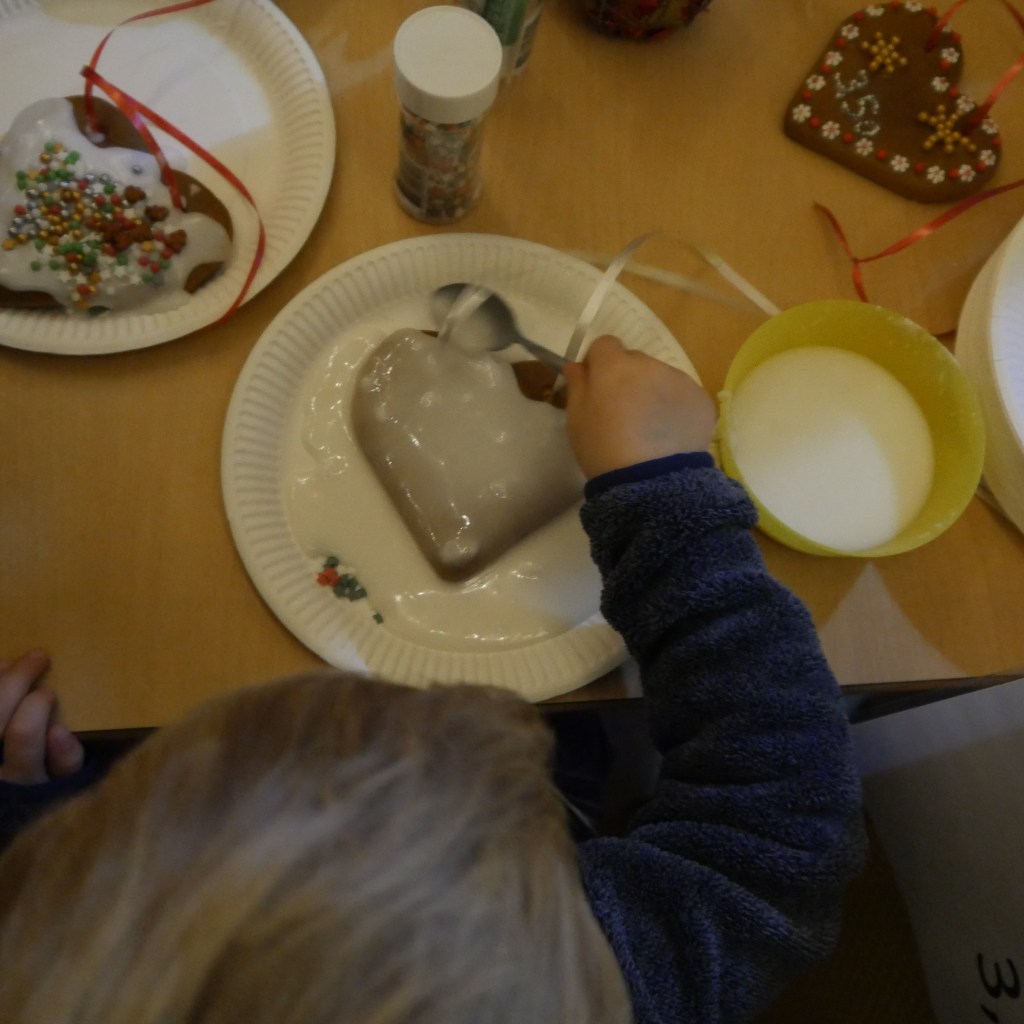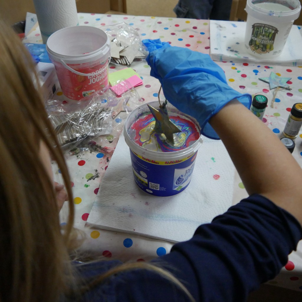Die Kinder konnten kreativ werden. Es gab die Möglichkeit, Sterne zu marmorieren, Kerzenständer zu basteln und Lebkuchen zu verzieren. In der Kuppel konnten die Gäste gemütlich unter dem Weihnachtsbaum Kaffee und Kuchen genießen.
