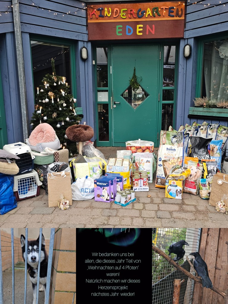 Der Kindergarten hat sich an der Spendenaktion “ Weihnachten auf 4 Pfoten“ beteiligt. Dabei wurden zahlreiche Spenden für die Wildtierrettung in Wensickendorf und den Verein “ Nordisch in Not e.V.“ in Hohenbruch gesammelt. Die Spenden wurden gemeinsam vor Ort überreicht, und es war ein bewegender Moment für alle Beteiligten.