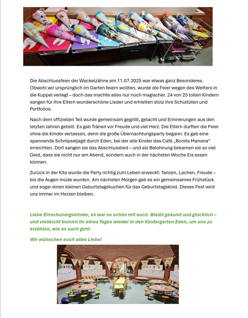 Nun heißt es wieder einmal Abschied nehmen 13. Juli 202513. Juli 2025 kitaeden Teilen mit: Klicke, um auf X zu teilen (Wird in neuem Fenster geöffnet) X Klick, um auf Facebook zu teilen (Wird in neuem Fenster geöffnet) Facebook Klicken, um auf WhatsApp zu teilen (Wird in neuem Fenster geöffnet) WhatsApp Mehr Klicken zum Ausdrucken (Wird in neuem Fenster geöffnet) Drucken Klicken, um einem Freund einen Link per E-Mail zu senden (Wird in neuem Fenster geöffnet) E-Mail Gefällt mir Wird geladen … Ähnliche Beiträge