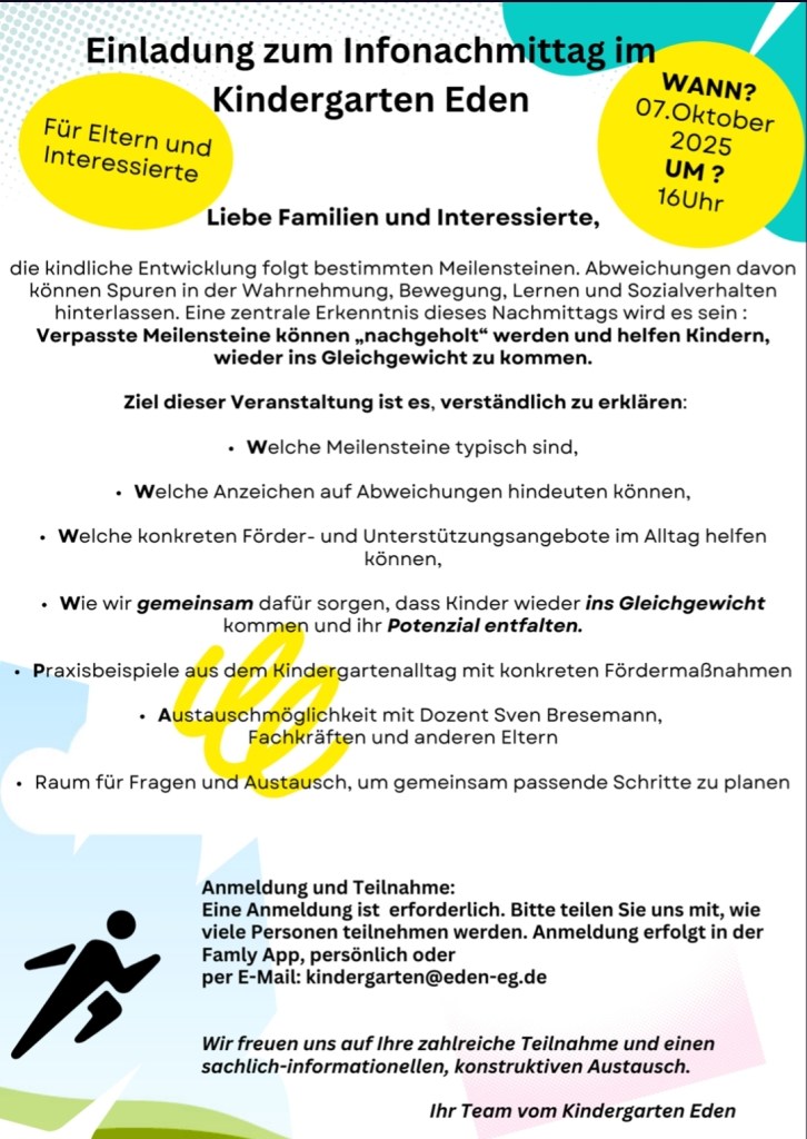 Infonachmittag mit Sven Bresemann 1. Oktober 202511. November 2025 kitaeden Teilen mit: Klicke, um auf X zu teilen (Wird in neuem Fenster geöffnet) X Klick, um auf Facebook zu teilen (Wird in neuem Fenster geöffnet) Facebook Klicken, um auf WhatsApp zu teilen (Wird in neuem Fenster geöffnet) WhatsApp Mehr Klicken zum Ausdrucken (Wird in neuem Fenster geöffnet) Drucken Klicken, um einem Freund einen Link per E-Mail zu senden (Wird in neuem Fenster geöffnet) E-Mail Gefällt mir Wird geladen … Ähnliche Beiträge
