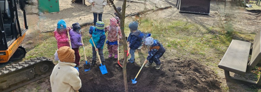 Am 10. April 2025 war ein besonderer Tag für die Kinder des Kindergarten Eden. In unserem großen Garten pflanzten sie mit großer Begeisterung fünf neue Obstbäume. Jede Gruppe wählte ihren Baum: Aprikose, Süßkirsche, Apfel, Birne und Pflaume. Die Pflanzlöcher wurden fachgerecht mit Unterstützung der Firma Rinn und dem Hausmeister der Eden Gemeinnützigen Obstbau-Siedlung eG. ausgehoben.… Weiterlesen Die Kinder des Kindergarten Eden pflanzten Obstbäume